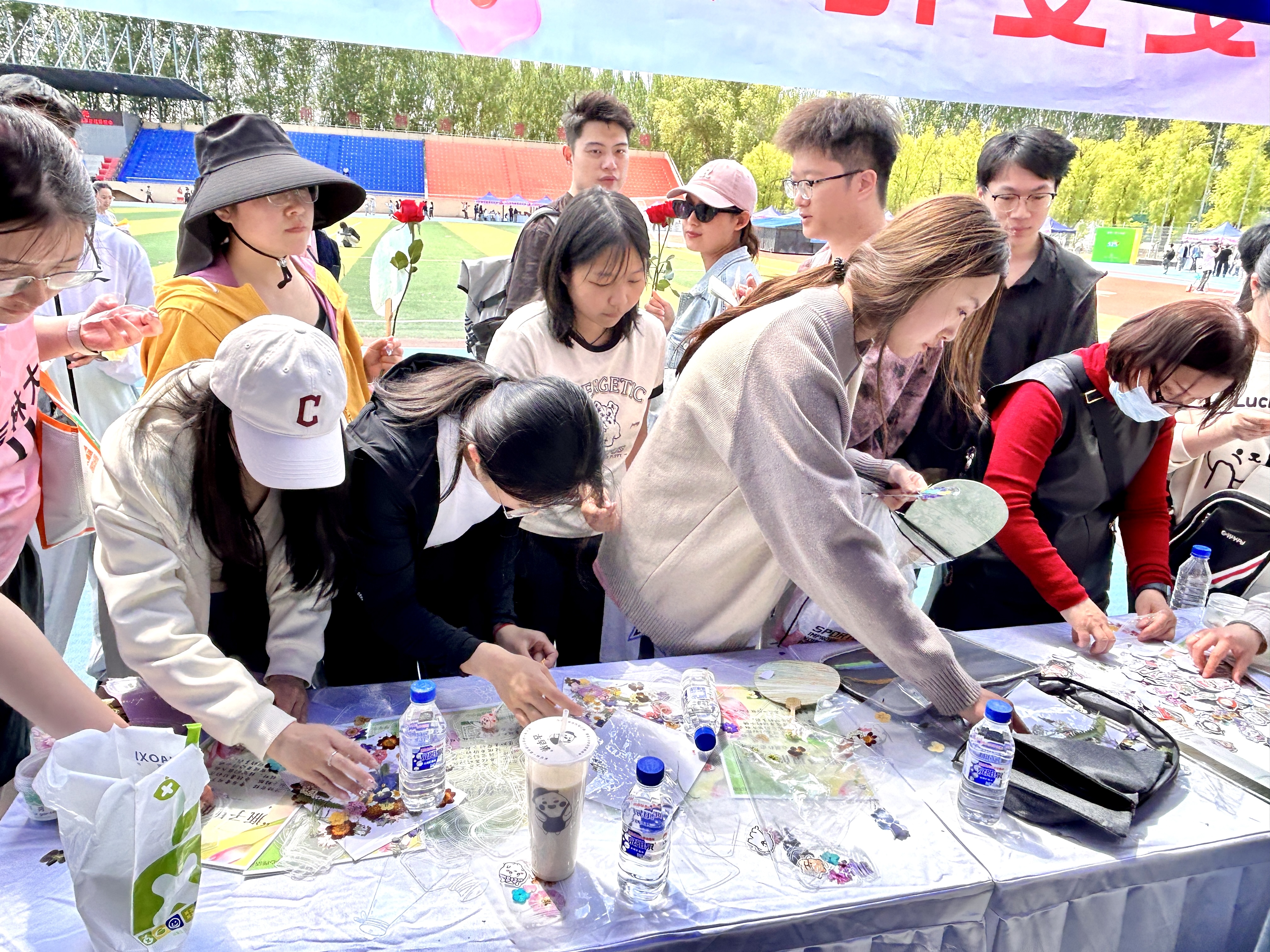 活动当天,在中心校区田径体育场的德育活动区,“瓶子里的初夏”展位前热闹非凡。参与者领取特制的透明“瓶子贴纸”后,可挑选喜爱的花朵图案与卡通形象,装饰“心灵瓶子”,进行创意表达。活动现场还设置了幸运抽奖环节,完成瓶子贴纸创作的同学可获得一次抽奖机会,奖品包含可爱的卡通玩偶与特色卡通钥匙扣。EMC易倍官方网站志愿者介绍到:“每一片自然元素都承载着季节的馈赠,希望同学们在收集与创作过程中放慢脚步,发现平凡中的美好,缓解浮躁与压力。”